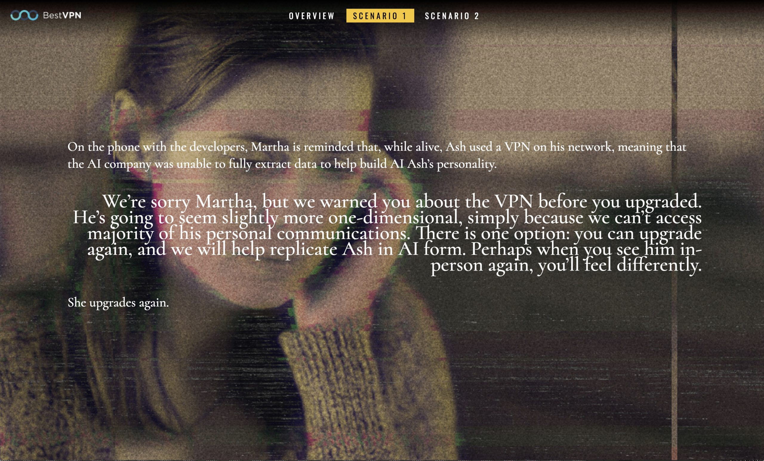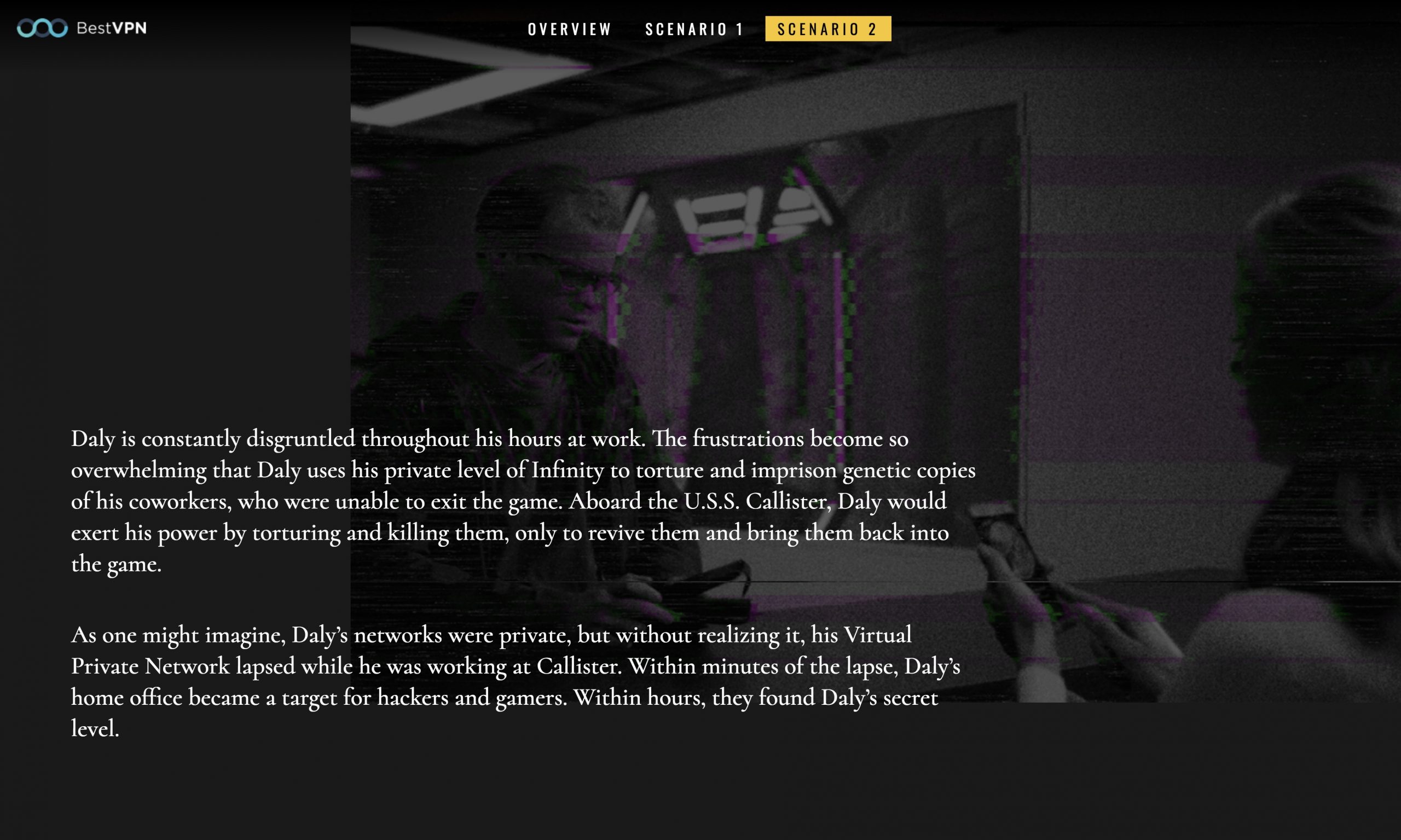 The idea was to take something people understood, in this case the popular Netflix series Black Mirror, and rewrite episodes asking “How would this have went different with a VPN?”. In the end we mocked and submitted 4 concepts, of which the client chose 2.