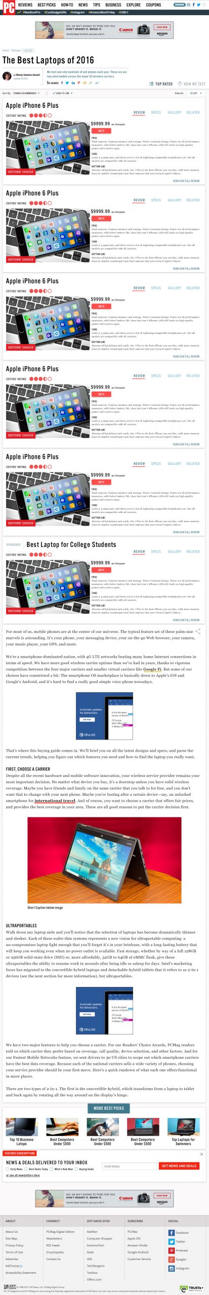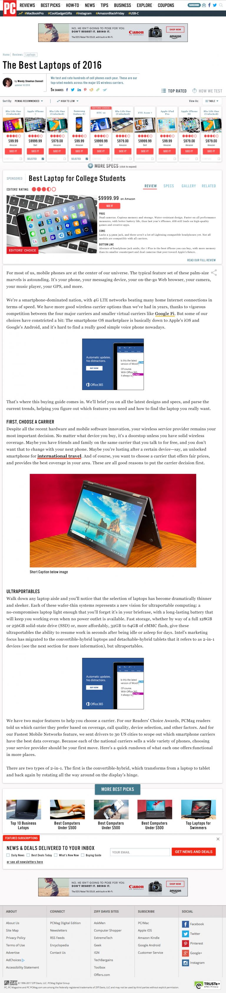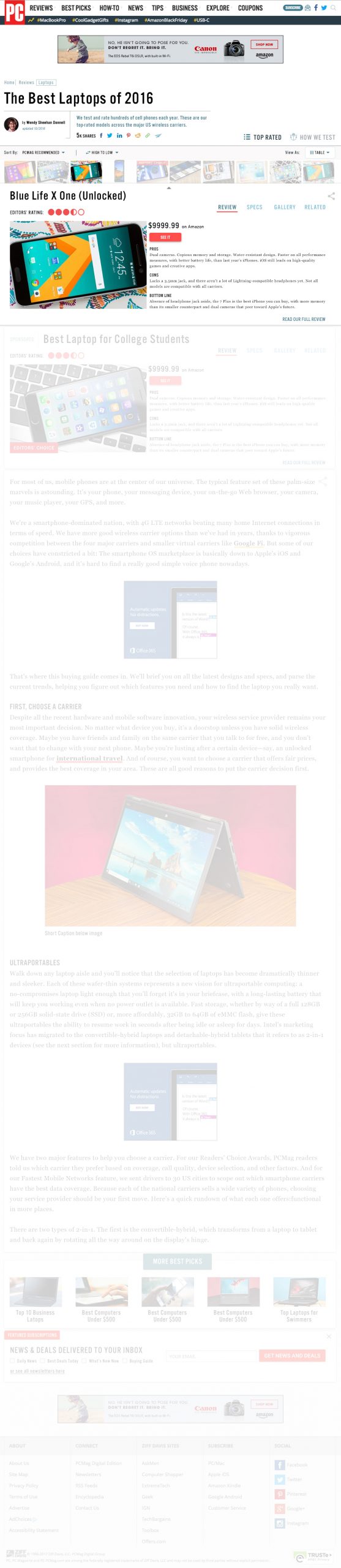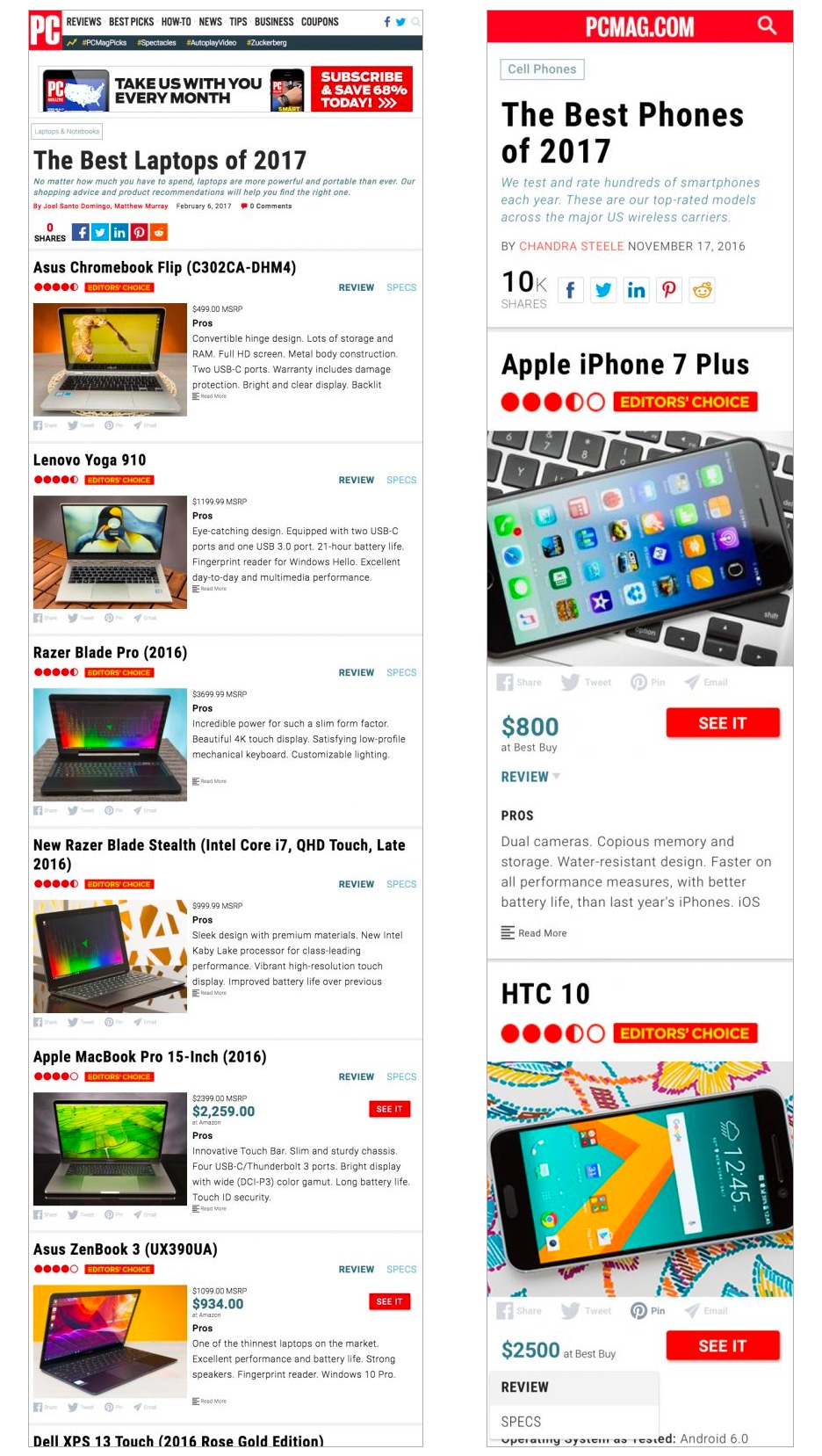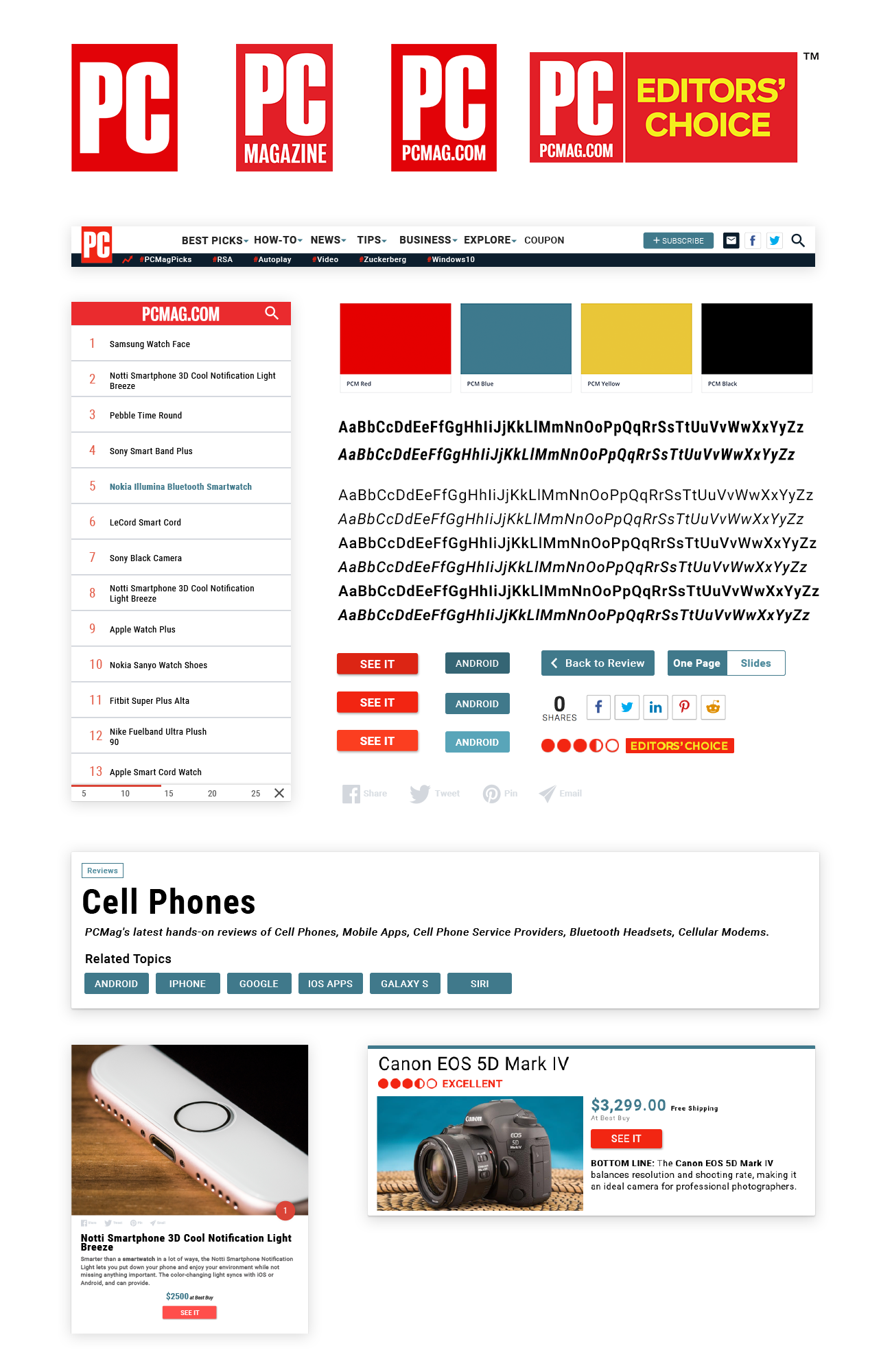 One of PCMag’s top performing pages are there Roundup page. These pages take 5-10 products and compile testing data to provide consumer comparisons. While traffic and engagement were high on Desktop, they saw a severe decline in both Tablet and Mobile engagement and conversions. The original goal was to redesign the page from Desktop down to Mobile, However, as the project progressed, it was decided that the MVP would only include Tablet and Mobile. the rationale was tied into various business goals and the need to launch in stages to test impact. The updated goal was to create a tablet and mobile specific experience that could both help increase engagement on those pages at those viewports and serve as visual direction for a possible update of the outdated (but currently steady performing) desktop pages. Below I will show all assets leading up to the final MVP. these include the original desktop wireframes that later lead to a refresh and update.