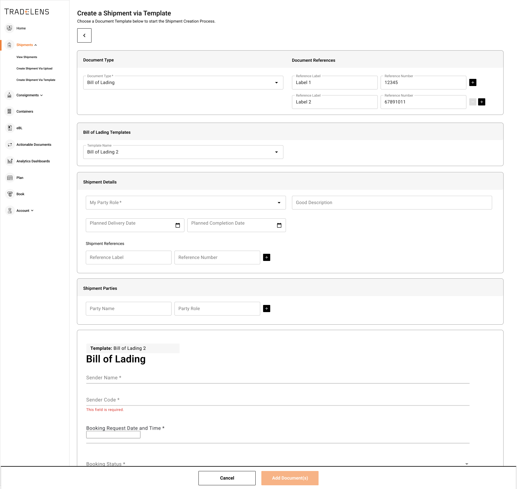 Documents and events are the cornerstone of the TradeLens Platform. Each trade object allows for easy access to the latest data for each.